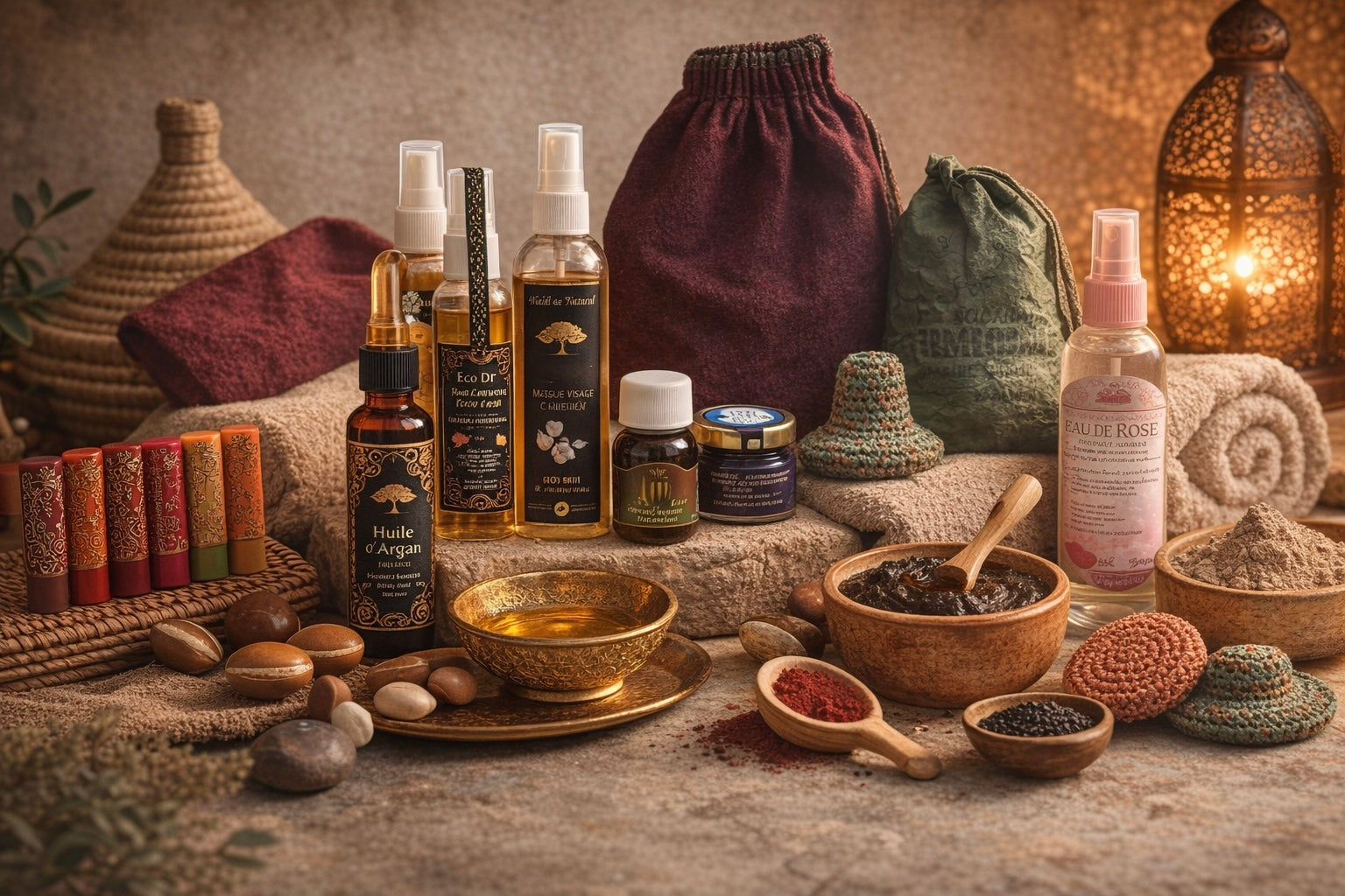 Découvre ton kit complet et transforme ta salle de bain en hammam : savon noir, ghassoul, gant kessa et éponge exfoliante. Tout pour prendre soin de toi...